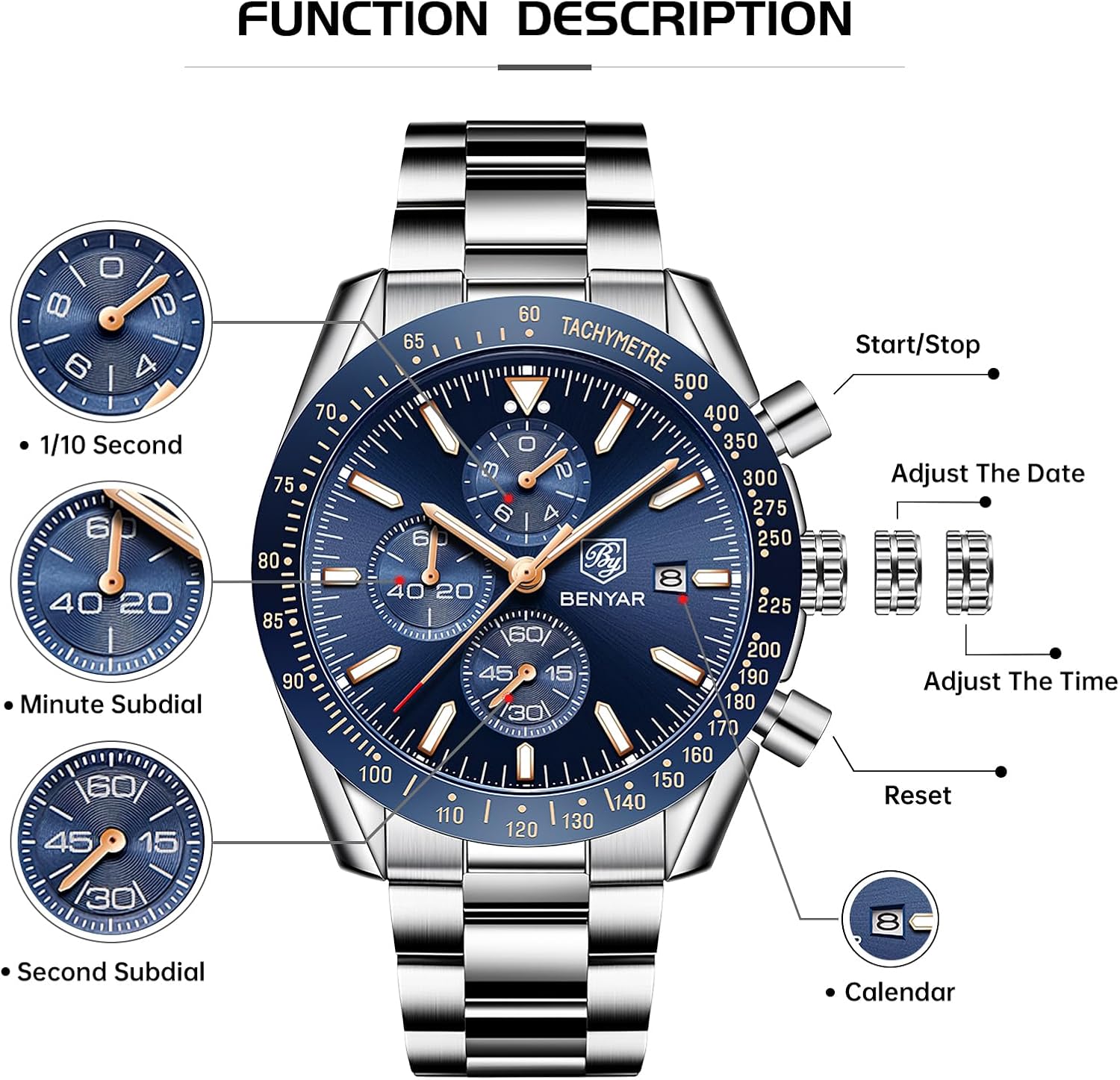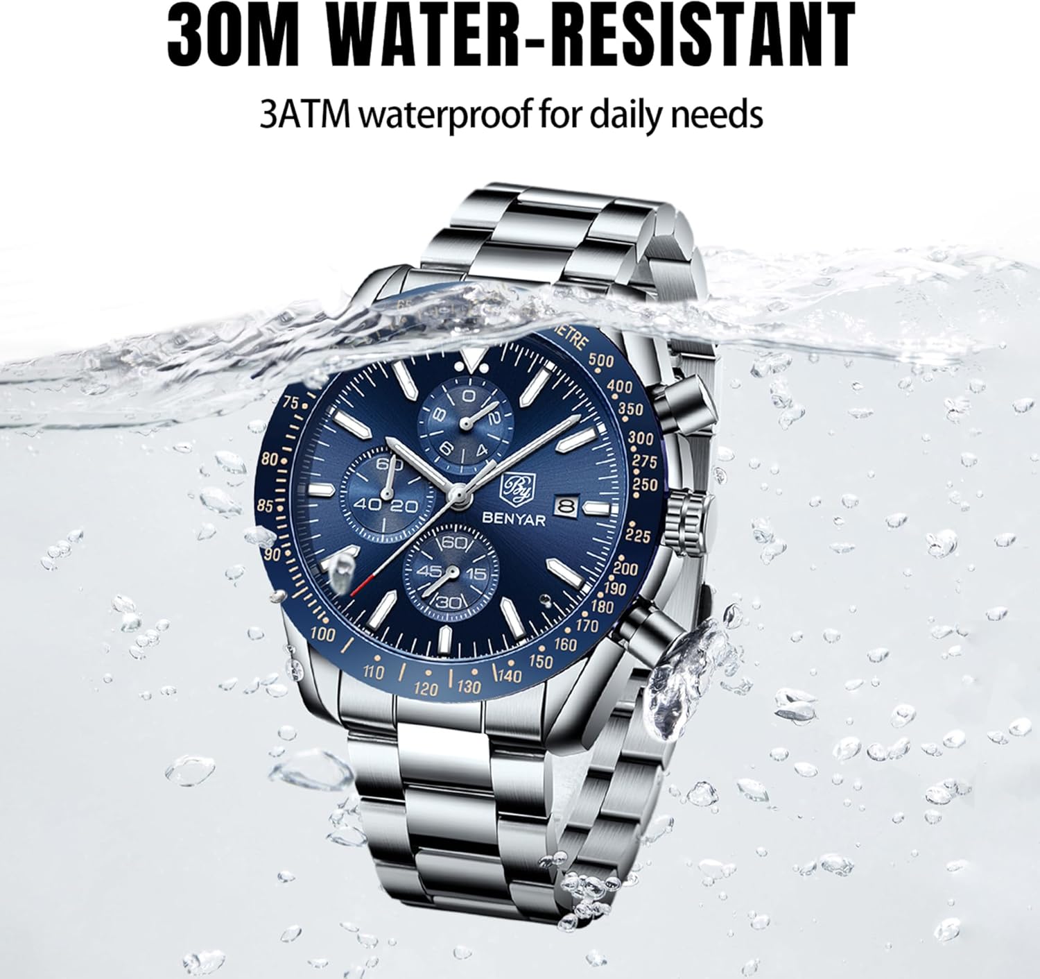 La montre BY BENYAR en acier inoxydable pour hommes incarne la quintessence du style classique allié à la performance contemporaine. Pour ceux qui recherchent une montre aussi belle à l’œil qu’utile au quotidien, c’est le choix par excellence. Alliant sophistication et robustesse, elle promet non seulement de se marier à toutes vos tenues, mais aussi de devenir un pilier de votre routine journalière, tout en capturant les regards admiratifs où que vous soyez.
