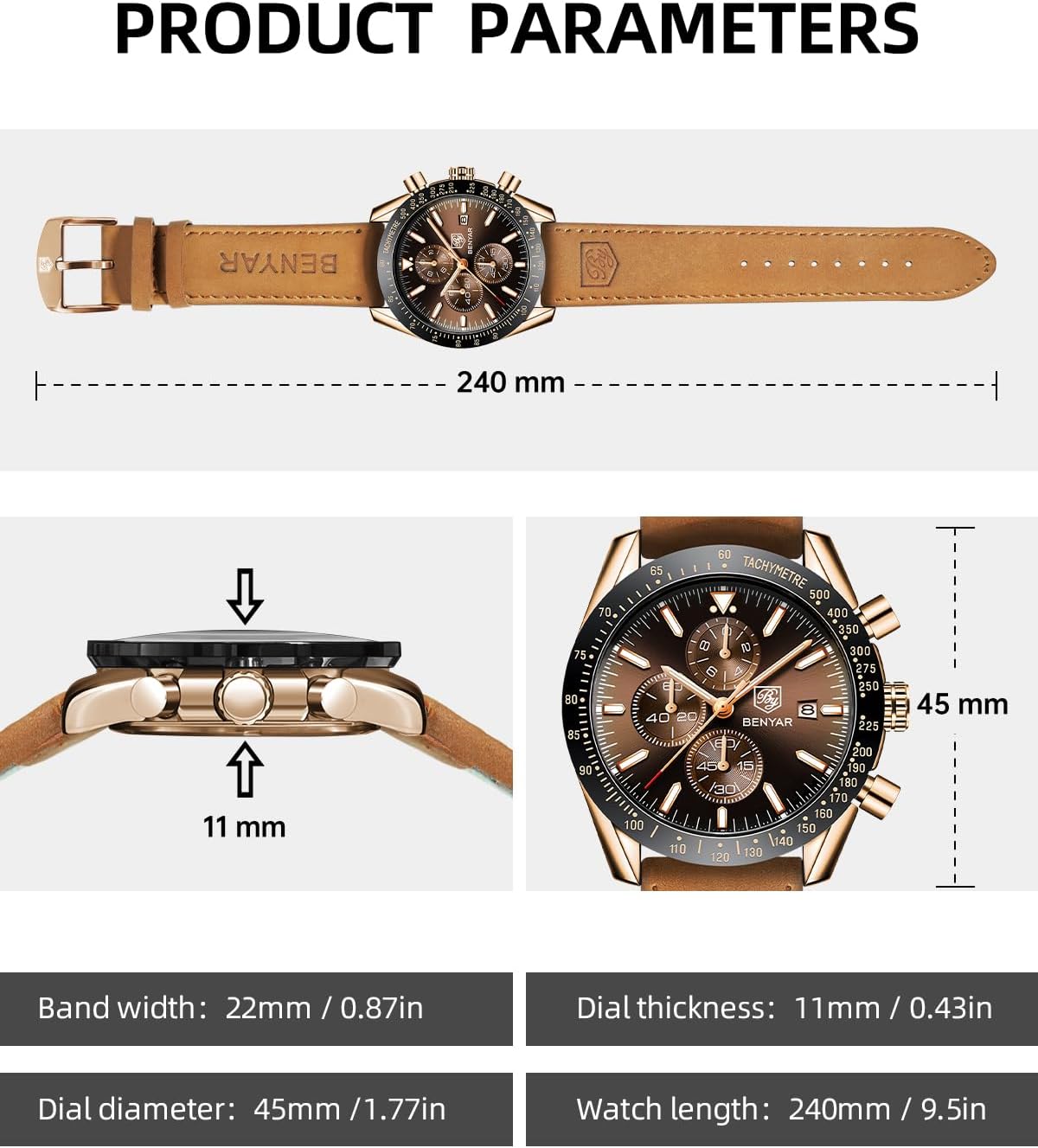 Son bracelet en cuir véritable ajoute une note de sophistication qui vous accompagne aussi bien lors d’une réunion professionnelle qu’à un dîner romantique. Le savoir-faire exceptionnel qui caractérise la BENYAR se traduit par un équilibre parfait entre l’esthétique classique et les traits contemporains, faisant de cette montre un accessoire polyvalent qui se mariera avec toutes les tenues.